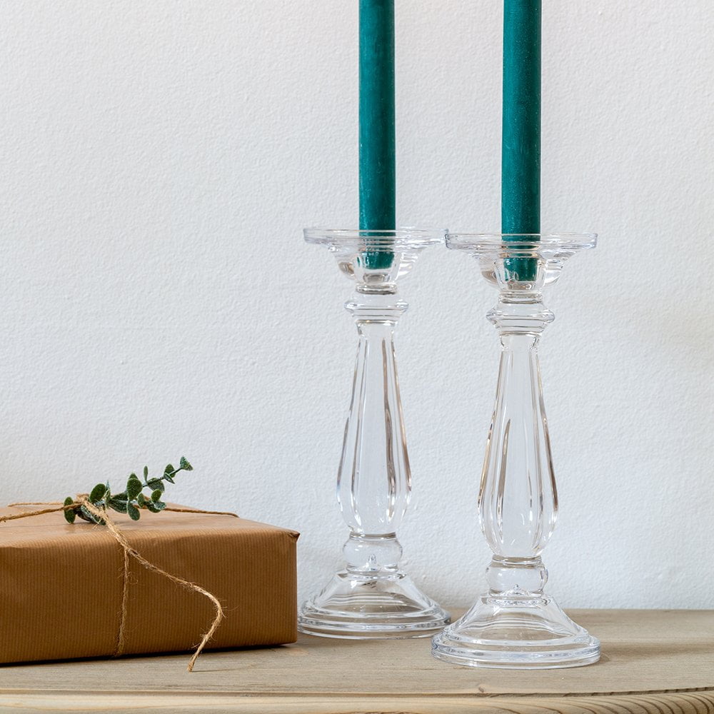 Our glass Tilbury Candlestick is available new and comes in a traditional clear version. Sophisticated and subtle, these dainty candle stick holders will make a pretty addition to your home when teamed with a beautiful rustic dinner candle. Adorn a mantle piece or use to embellish a dinner party table setting, wherever you choose to place them, we can assure they will compliment any interior.